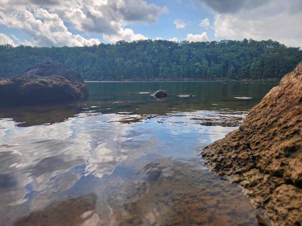 Once I had camp setup I went exploring. The lake here is beautiful. I had an early dinner/snack of crackers, cheese and meats. I wasn’t that hungry since I was sitting in a car for 6+ hours. I also took a stroll around the campgrounds and the lakefront, taking many pictures and videos. The red clay and rocks along the waterline was simply beautiful, but extremely slippery! So be cautious.