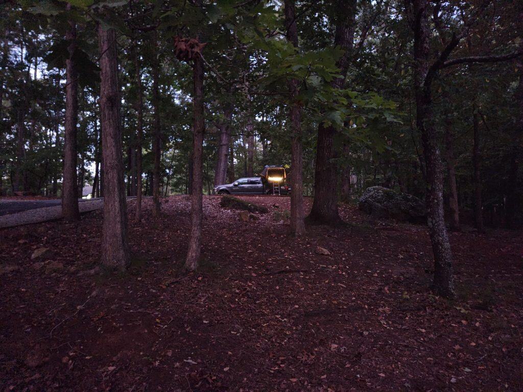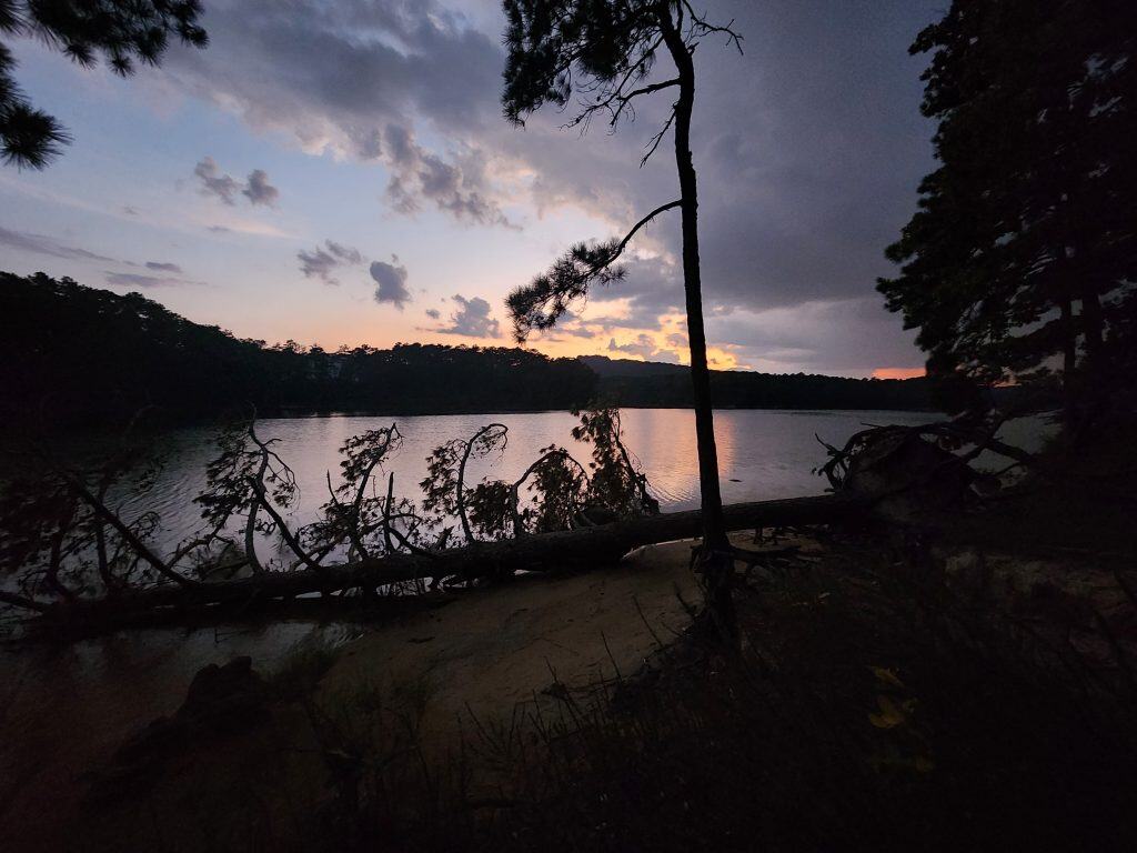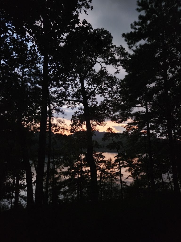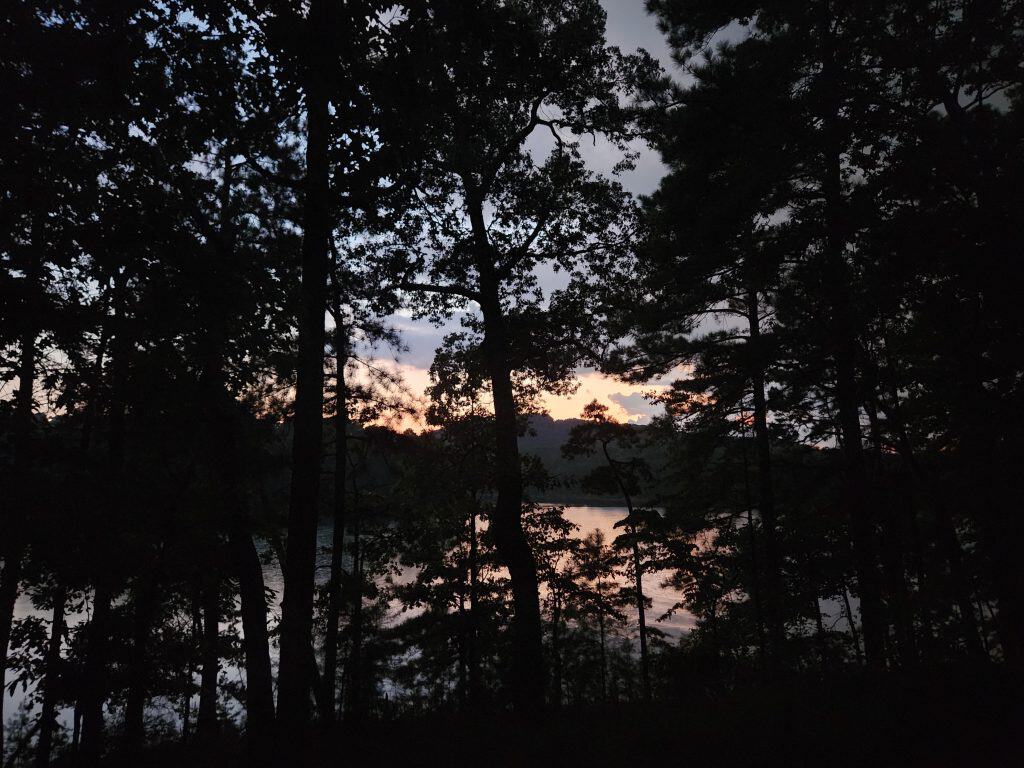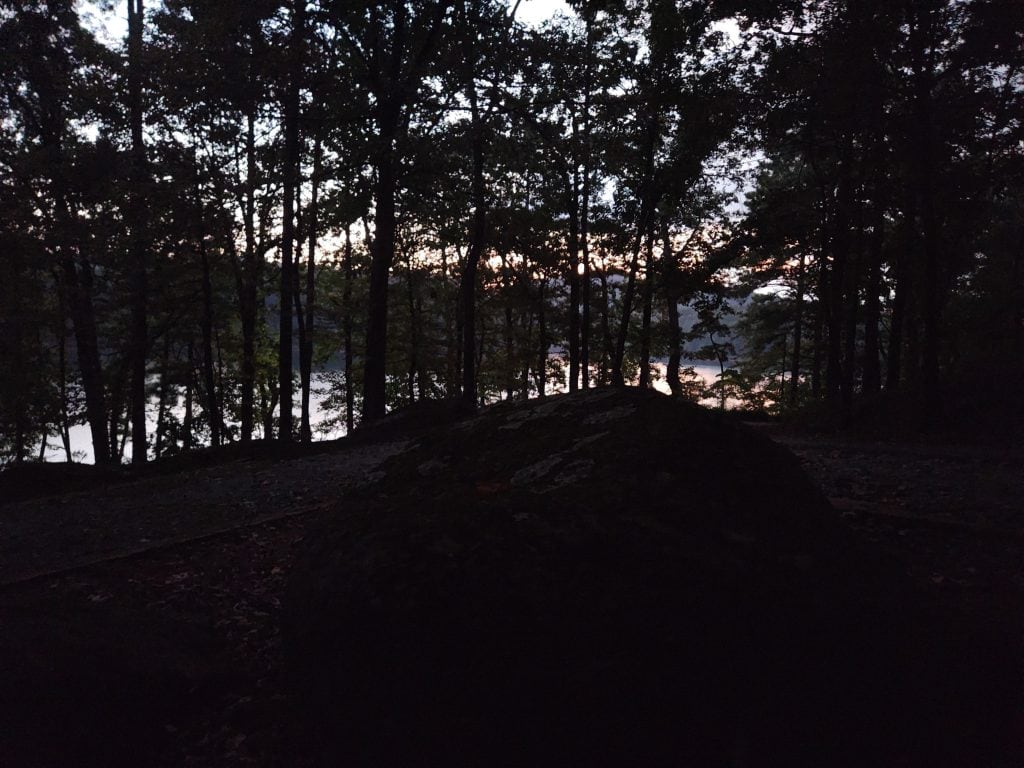 The evening was also nice and calm. Aside from the occasional car slowly passing by, no other campers’ setup up near me. There was, however, a group of campers that had a perfect spot. A little further down, the path was a camp site that had 4 parking spots together, and the camp was about a 30 second walk onto what appeared to be a small peninsula where up to 5 tents could fit. I’ve got to research that spot for next time! It did however start drizzling, but that was expected as I was paying attention to the weather forecasts and that front looked like it was passing my spots in GA and TN by Friday afternoon. I attempted to get a time lapse video, but it was pointless to keep it, seeing as it was only like 2 minutes long since it started raining more heavily and I had to bring my camera inside.