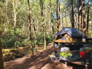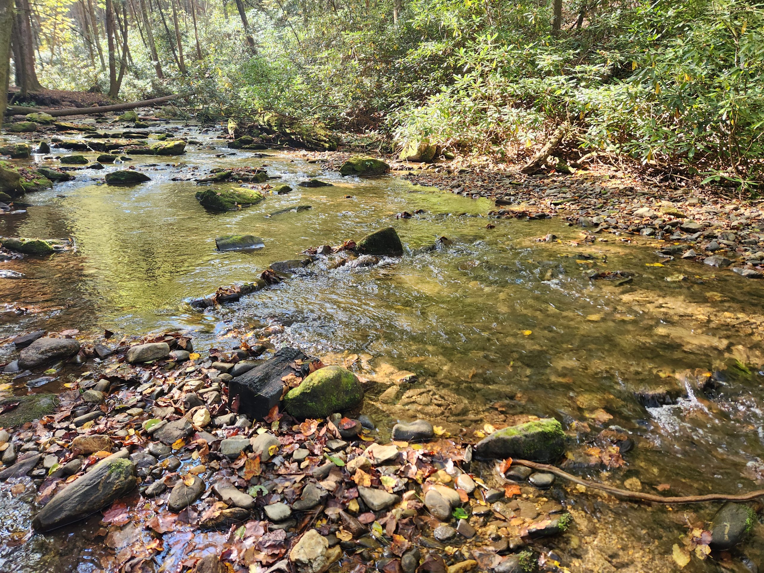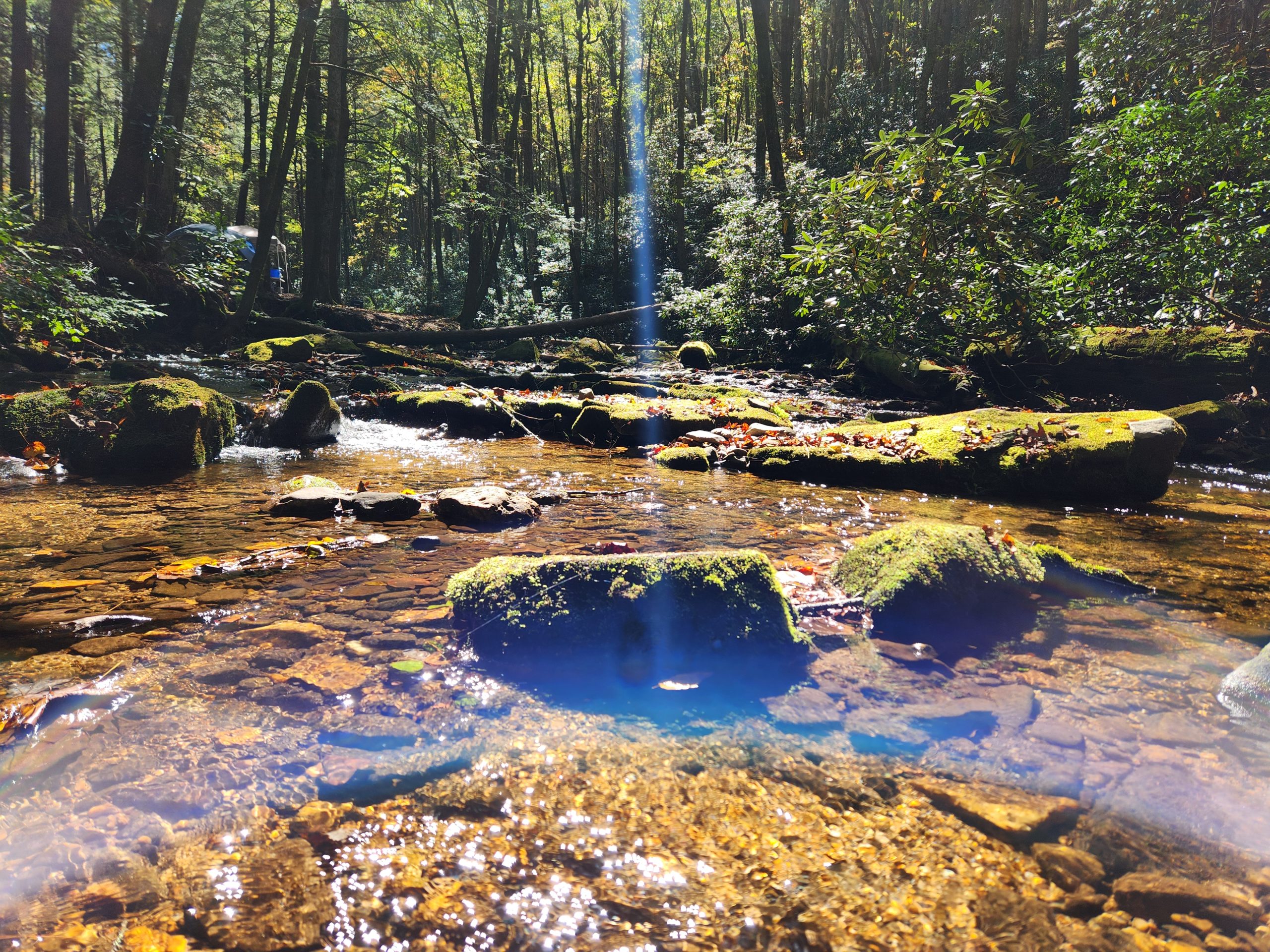 I got to the Forest Service entrance at 8:00 am and it took about an hour & a half to get to Corbin Creek. There were already campers setting up their tents. They wound up with the prime real estate but the spot I grabbed was perfect, right next to the creek. I had planned to pack up and get out by 7am.