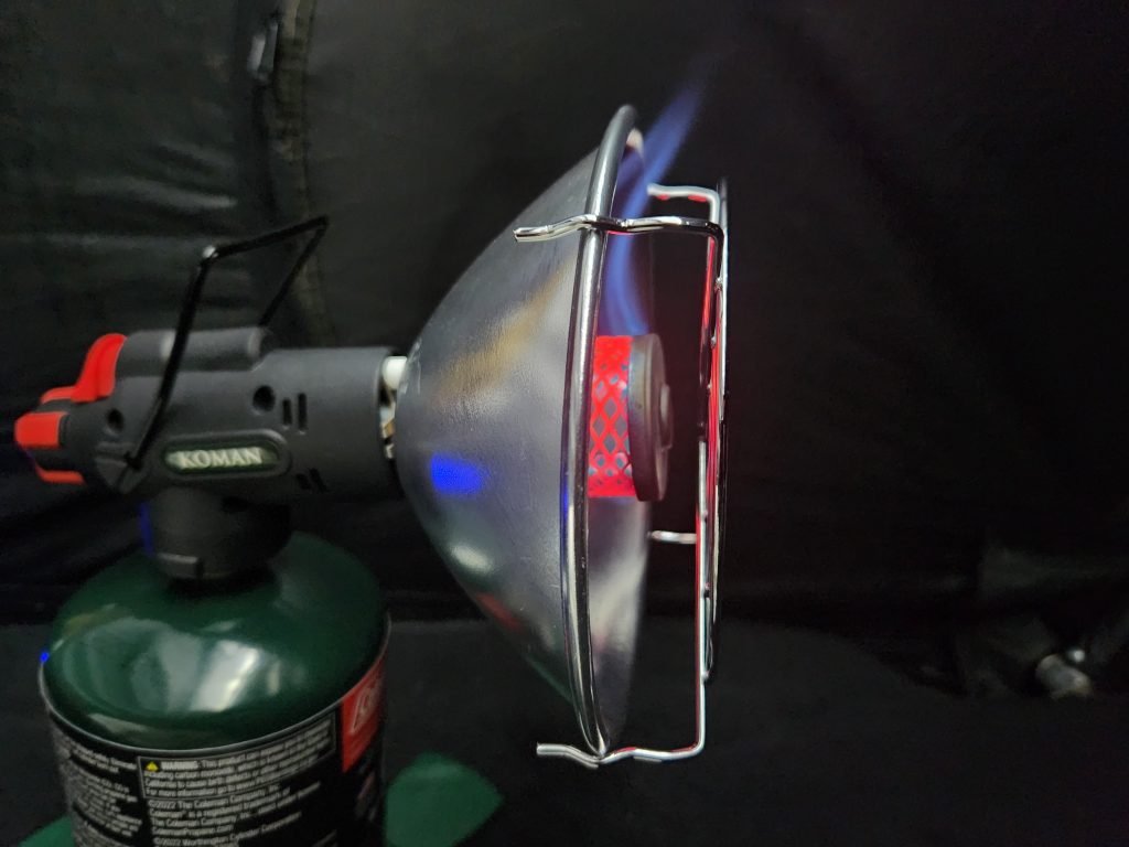 After dusk, the cold came. I was trying to conserve fuel, I would heat the tent for 30 minutes and then shut it off. I didn’t want to knock it over while sleeping! After waking up freezing for the 3rd time, I relocated it and left it on extremely low and went back to sleep. The only drawbacks were, condensation on the lower 1/3rd inside my tent, I only brought one canister, and it was almost entirely used up in one night. But I had plenty of blankets for night #2.