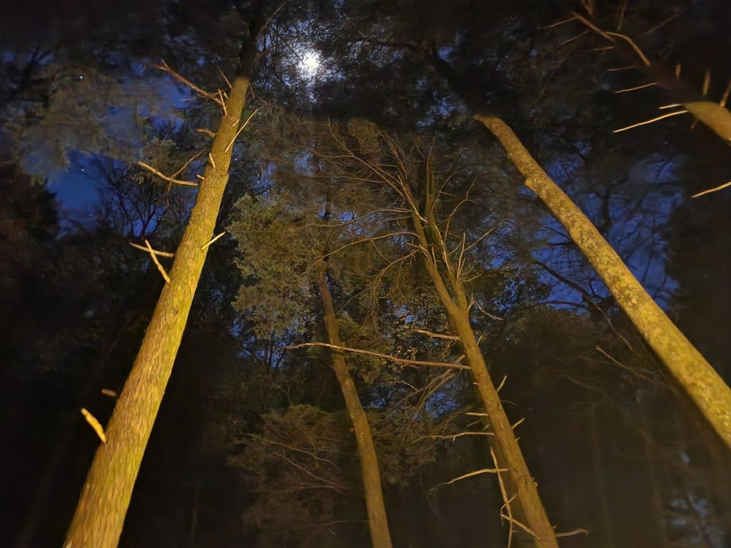 Some of the images below were taken in night mode with a slower shutter speed, hence the reason you can see the tree trunks better in some.
