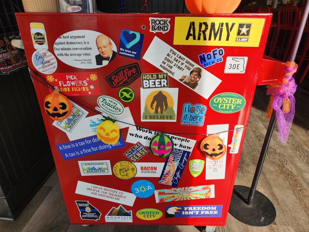 I didn’t notice these stickers last year but the Oyster City sticker caught my eye, since there’s only one place you used to be able to get it from… Oddly enough 30E is the same road as 30A (Googled). Never seen it written like that. This is the 2nd time this trip I’ve seen something from that area. Interesting “Friends” menu, guess ya gotta do what you can to grab attention when your surrounded by beautiful mountains. I just thought that was a pretty cool picture in my hotel room.